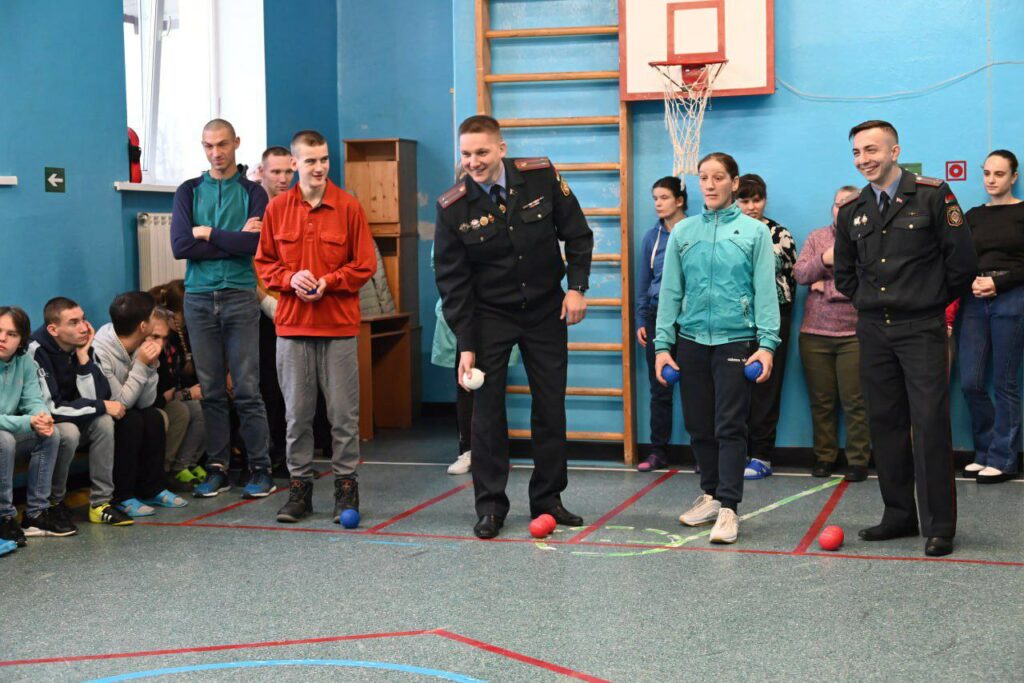 Гости (начальник РОВД Андрей Иванов, председатель ветеранской организации райотеда Валерий Хотянович, первый секретарь ОО «РБСМ» Анна Мартынова, председатель Молодёжного совета при районном Совете депутатов Евгения Никитина, инструктор валеолог Алина Громыко) вместе с воспитанниками поучаствовали в спортивной программе, приуроченной ко Дню инвалидов, соревновались в настольном теннисе, в таких играх, как бочча, жульбак и др. Лучших игроков наградили дипломами.